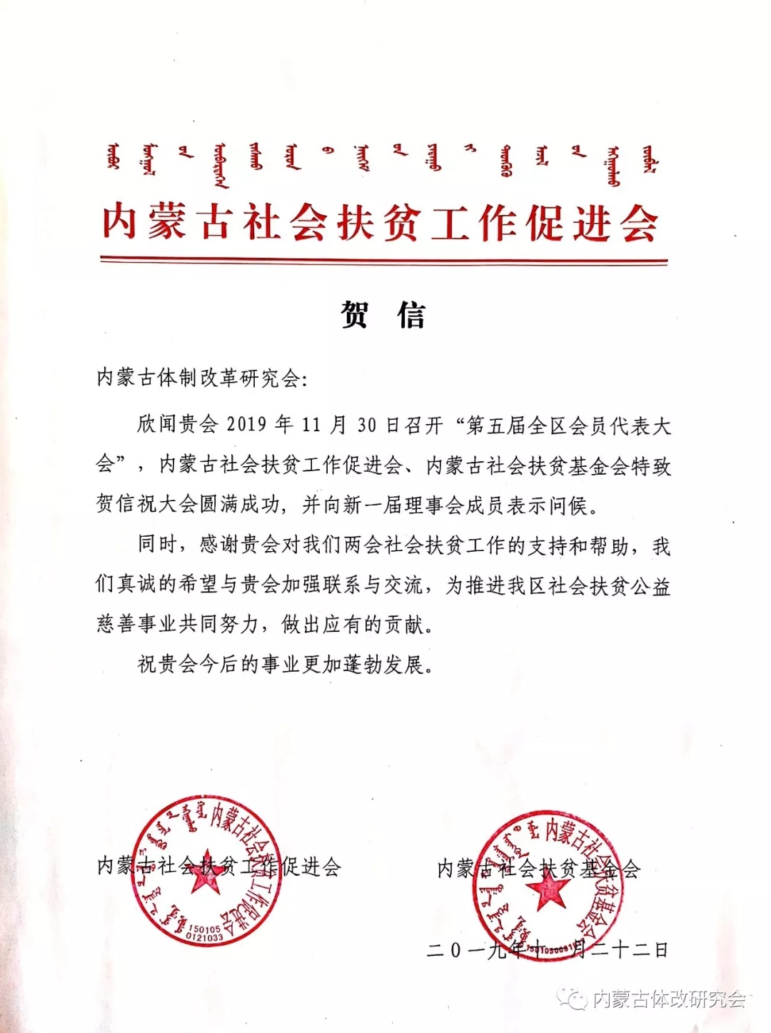 內蒙古社會扶貧工作促進會、內蒙古社會扶貧基金會發來賀信