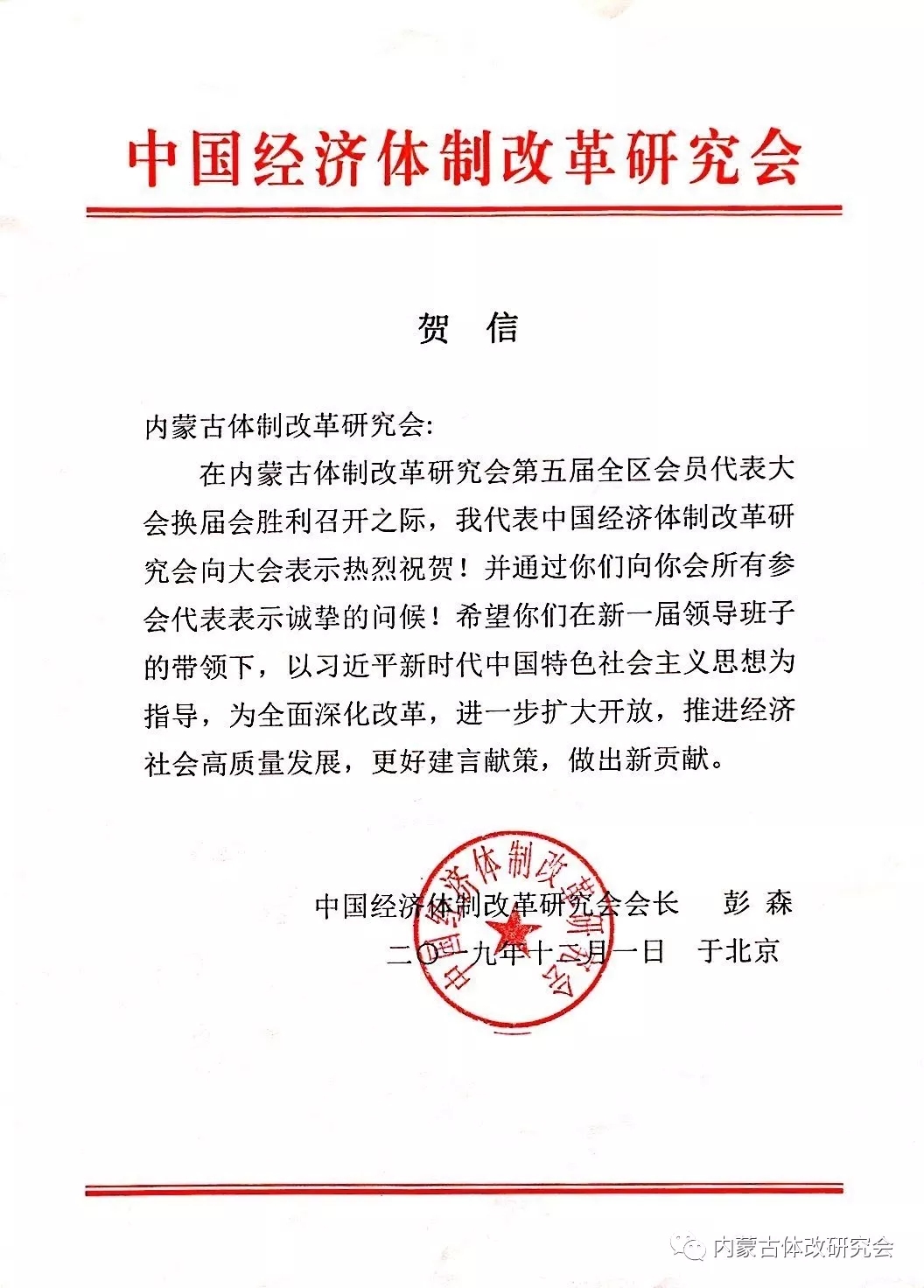 中國體制改革研究會會長彭森及內蒙古社會扶貧工作促進會等發來賀信表示熱烈祝賀。