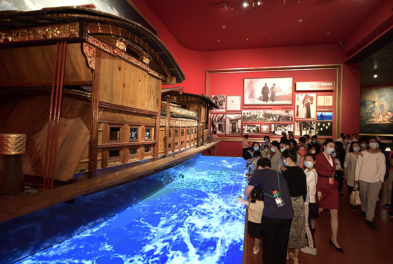 觀眾在中國共產黨歷史展覽館參觀(2021年10月1日攝)。新華社記者 李賀 攝