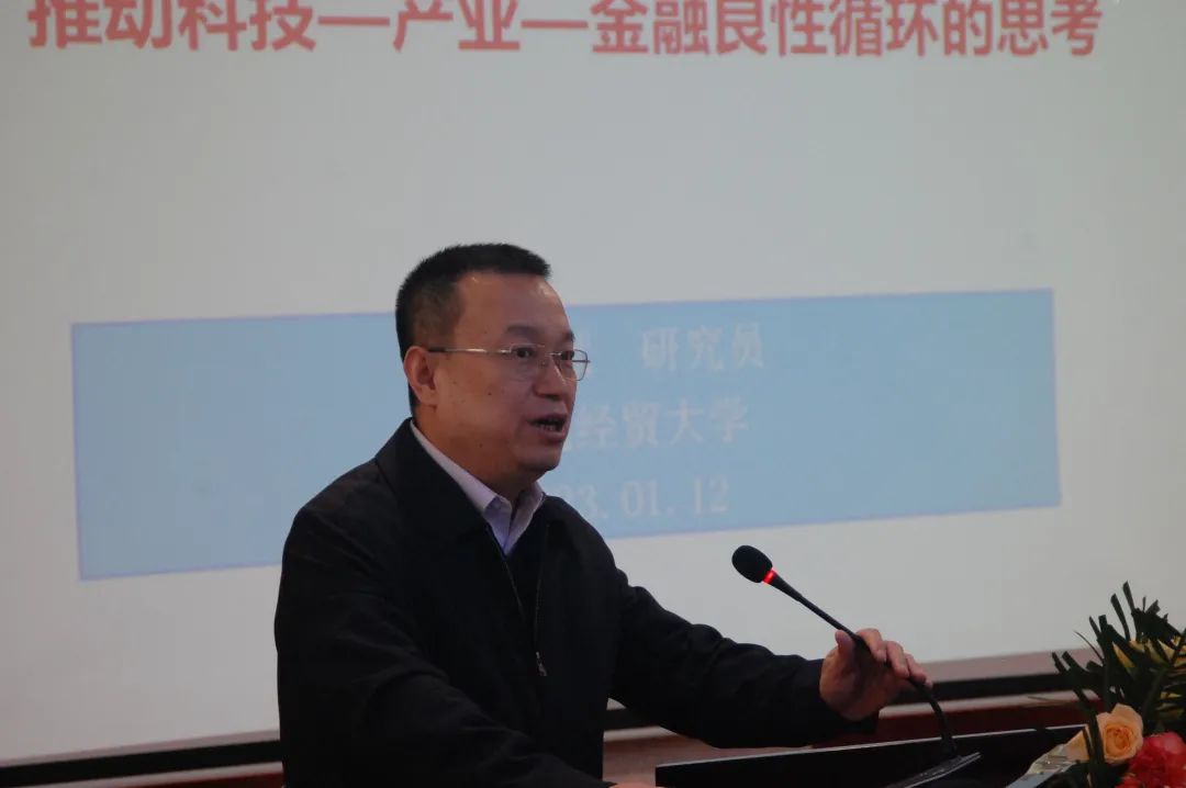 史玉強在書面致辭中說,此次會議雖然規模不大,時間也不長,但內容很豐富,層層較高,很有特點,是一個小而精、小而美的高質量研討會。會議以貫徹黨的二十大精神,深化改革,推動經濟高質量發展為主題,深入研究產業、科技、金融良性驅動,建設現代化產業體系,是當前經濟工作重點。會議組織形式新穎,兩個研究會、一所大學、一家銀行聚集研討,各有特點,各有優勢,一定會推出高水平成果。參會演講的專家都是業內、省內的頂級專家,是一次名副其實的精英聚會。會議堅持虛實結合,設計了銀企對接環節。