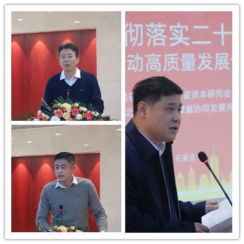 中國商業經濟學會副會長、河北省改革戰略研究會顧問、河北經貿大學原校長紀良綱,河北省資本研究會會長、杰明投資董事長李月分別發表致辭,中國經濟體制改革研究會副會長、河北省改革戰略研究會會長劉萬玲致辭并作主旨演講,河北資本研究會首席經濟學家、河北省商務廳原巡視員史玉強從外地發來書面致辭。河北省改革戰略研究會副會長、河北經貿大學副校長田學斌教授,邯鄲銀行黨委書記、董事長鄭志瑛教授,河北省宏觀經濟研究院副院長高智研究員,河北經貿大學金融學院院長王重潤教授分別作主題演講。河北省改革戰略研究會副會長、河北省社科院創新驅動發展研究中心主任顏廷標研究員主持研討會。會議期間還舉辦了新書發布、銀企對接活動。參加會議的還有河北省改革戰略研究會特邀高級專家、河北冀廣傳媒集團公司原董事長趙華茂,河北省改革戰略研究會副會長馮文斌 ,經貿橋聯合創始人、省校企合作促進會執行會長張曉軍,河北省資本研究會副會長、河北省軍民兩用技術交易中心主任周天易,邯鄲銀行石家莊分行行長常志英,河北省資本研究會秘書長韓峰,河北省改革戰略研究會秘書長李文正等。省內經濟界知名學者、行業專家和企業代表等30余人出席會議。