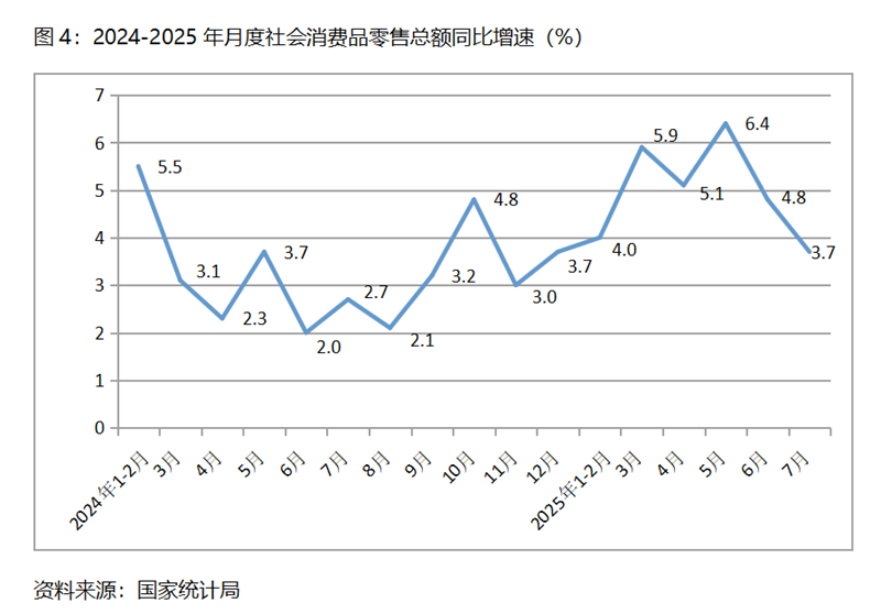 7月份,出口和廣義貨幣供應量增速比6月份回升,工業、零售、投資和居民消費價格增速或漲幅回落。這些變化反映出宏觀調控政策力度仍在加大,應對復雜困難的國際環境取得的積極效果繼續顯現,但整體經濟運行減弱的苗頭,特別是消費增速的持續回落,投資增速的明顯回落,需要引起宏觀調控政策的高度重視。下階段宏觀調控政策,既要保持在力度上與上半年的銜接,保持政策的連續性穩定性,又要針對新問題及時出臺新的政策,加大調控的力度政策的強度,以確保國民經濟的平穩運行。